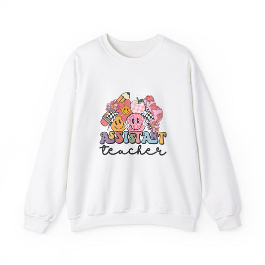 Apple Teacher Assistant Sweatshirt, Apple Teacher Assistant Sweater, Smiley Teacher Assistant Sweatshirt, Retro Teacher Assistant Sweatshirt, Checkerboard Teacher Assistant Sweater, Checkered Apple Sweatshirt, Back to School Sweatshirt